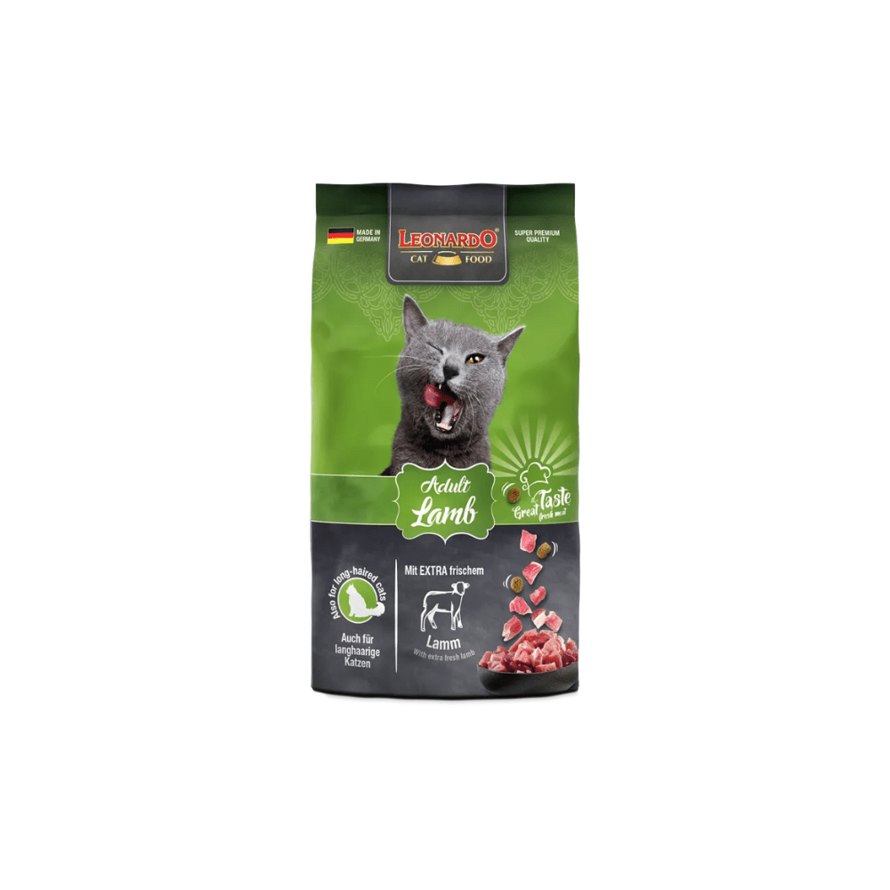 LEONARDO Adult Lamb, con cordero fresco y superfoods, es delicioso y fácil de digerir. Ideal para gatos sensibles o con problemas intestinales gracias a su receta equilibrada.