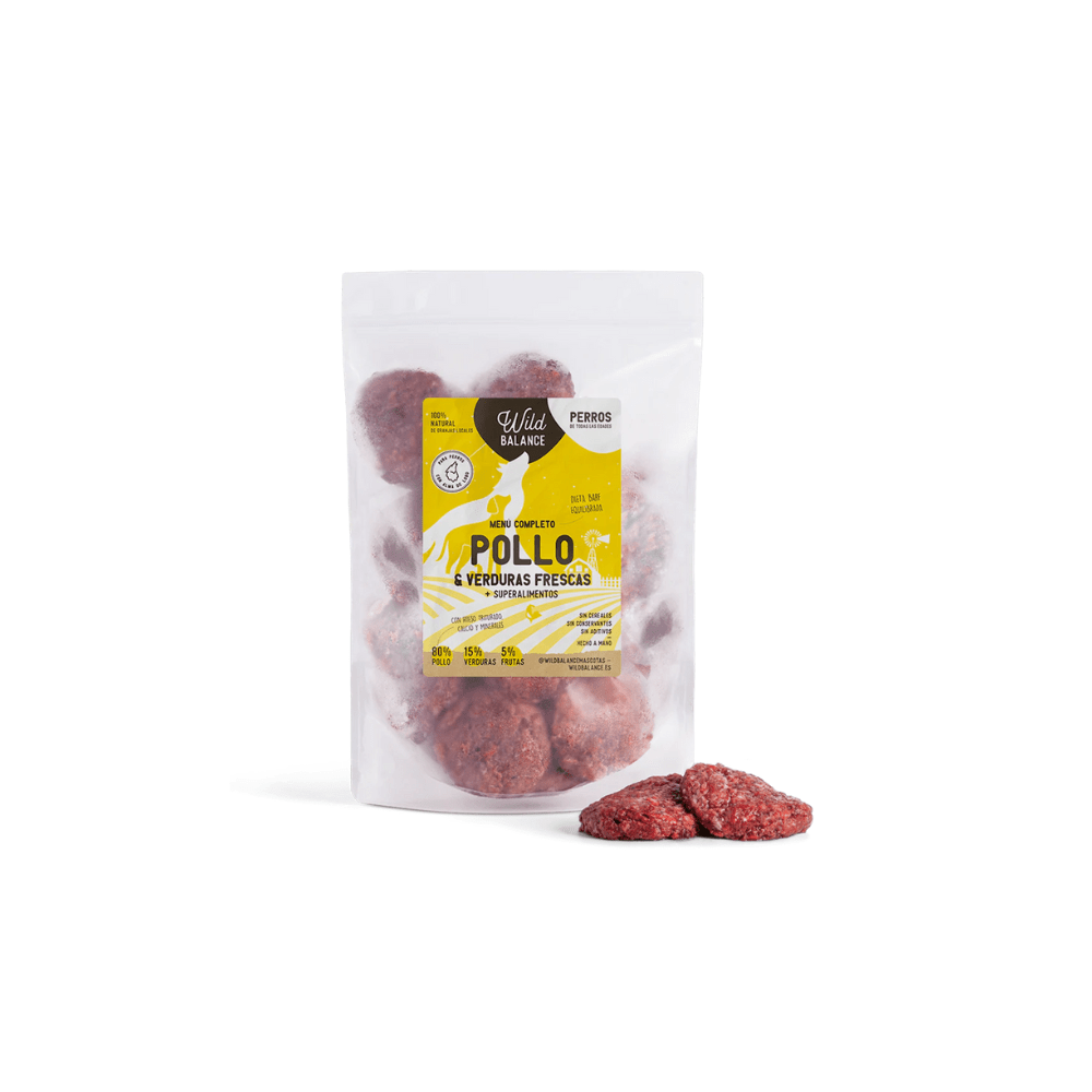El Menú de Pollo de Wild Balance es una opción muy completa para tu perro. Lleva un 80% de pollo y un 20% de frutas y verduras frescas. Al ser una proteína baja en grasa, va genial para perros con el estómago sensible. Es un básico que no debería faltar en su dieta mensual.