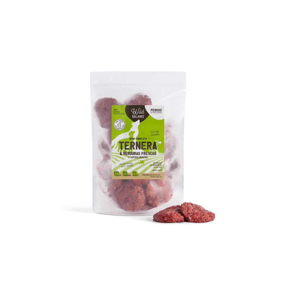 El Menú BARF de Ternera con Verduras Frescas es ideal para perros de cualquier edad. Está hecho con un 80% de carne de ternera y un 20% de frutas, verduras y suplementos naturales. La ternera es una carne rica en proteínas, vitamina B6 y hierro, y su sabor suele encantarles. Es un menú completo, monoproteico y perfecto para cuidar su alimentación diaria.